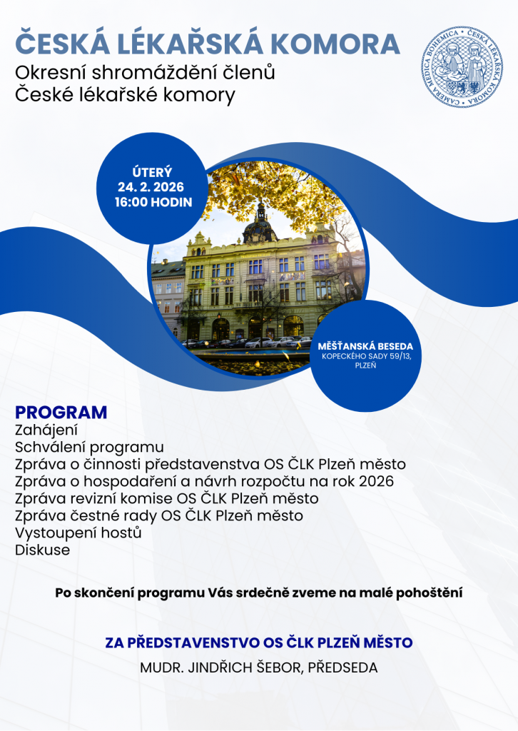 Okresní sdružení ČLK Plzeň město zve své členy na okresní shromáždění, které se uskuteční v úterý